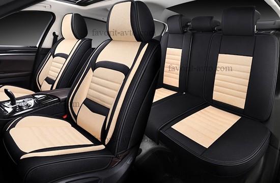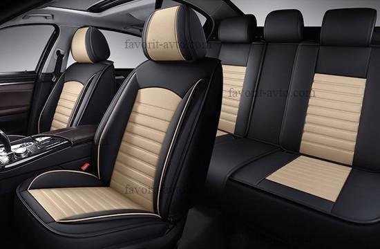Авточехлы 5D MERIDIAN AUTOPREMIER, комплект 4 шт., чёрный/бежевый, экокожа, закрытая спинка, карман, 1/5, MID1600 |