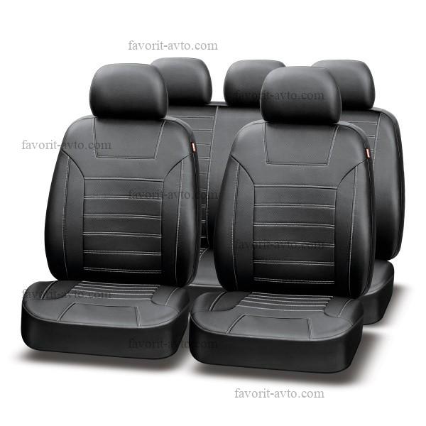Авточехлы 5D SIRIUS AUTOPREMIER, комплект 4 шт., чёрный, экокожа, закрытая спинка, карман, литой подголовник, 1/6, SIR1000 |