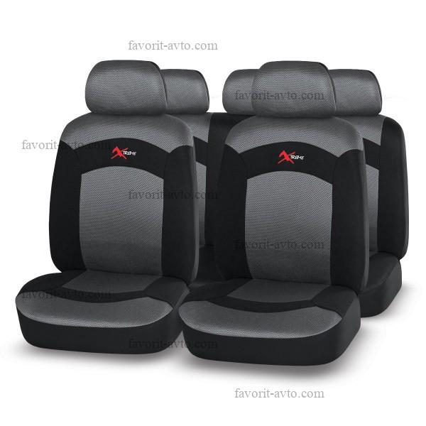 Авточехлы EXTREME AUTOPREMIER, чёрный/серый, велюр/сетка, 4 мм поролон, 3 молнии, 9 предметов, 1/5, EX1400 |