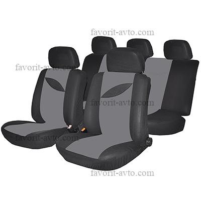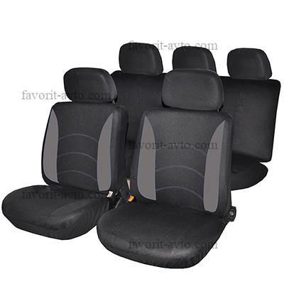 NEW GALAXY Авточехлы 9 пр., полиэстер, Гамма, 3 молн. в спинке, 3 молн. в сидении, черный/серый. 1/10 |