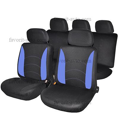 NEW GALAXY Авточехлы 9 пр., полиэстер, Гамма, 3 молн. в спинке, 3 молн. в сидении, черный/синий. 1/2 |