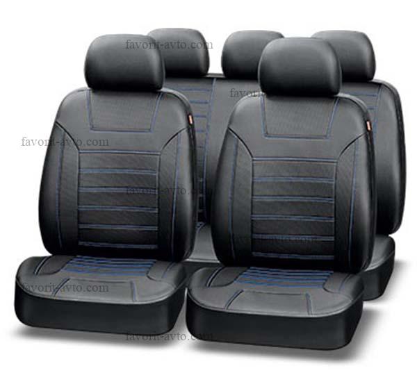 Авточехлы LORD AUTOPREMIER, чёрный/синий, экокожа, стёганый, карман, 5 мм поролон, 2 молнии, 11 предметов, 1/8, LOD1010 |