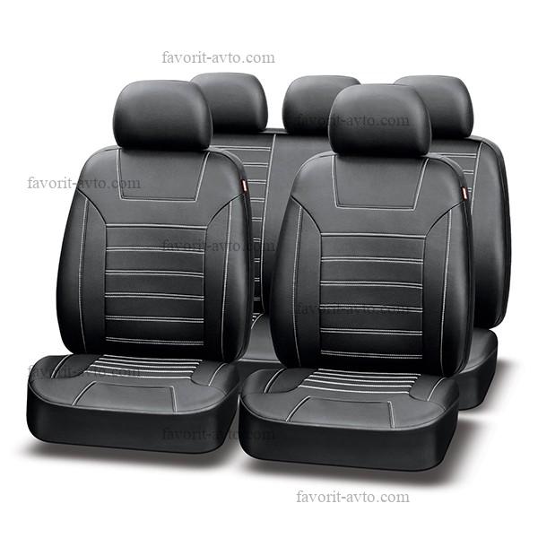 Авточехлы PREMIER PLATINUM VIP, /ЧЁРНЫЙ-белая нить/, экокожа, SRS AIRBAG, карман, 5 мм поролон, 6 молний, 11 предметов, 1/5, PIV2010 |