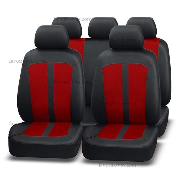 Авточехлы PREMIER LEADER, /ЧЁРНЫЙ-КРАСНЫЙ/, полиэстер/сетка, 2 мм поролон, 3 молнии, 9 предметов, 1/10, LDR1200 |