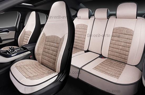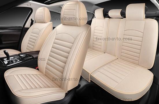 Авточехлы 5D SIRIUS AUTOPREMIER, комплект 4 шт., бежевый, экокожа, закрытая спинка, карман, литой подголовник, 1/6, SIR1600 |