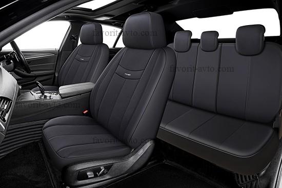 Авточехлы на сиденья 9пр., черные+черная нитка М5, Classic series. 1/10 |