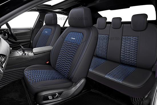 Авточехлы на сиденья 9пр., черные+синяя нитка М5, Classic series. 1/10 |