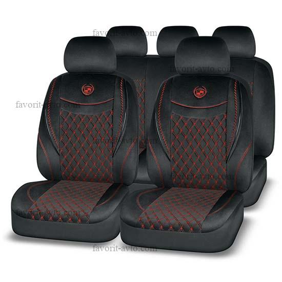 Авточехлы AUTOPREMIER ELEGANT, (ЧЁРНЫЙ/ КРАСНАЯ НИТЬ), алькантара, SRS AIRBAG, карман, 5 мм поролон, 6 молний, 11 предметов, 1/5, ELG1020 |