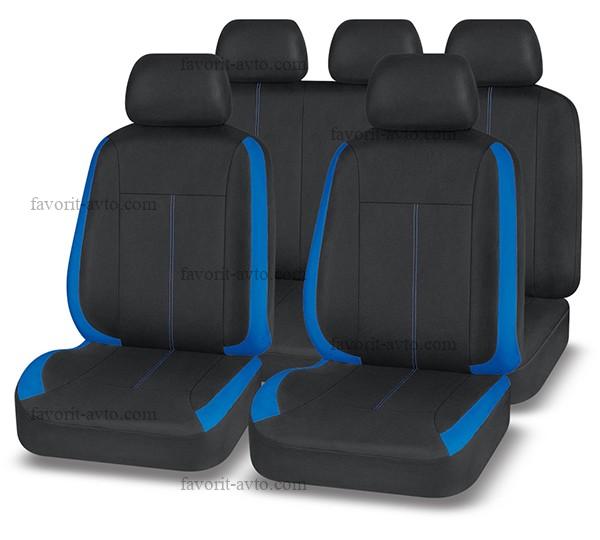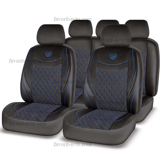 Авточехлы AUTOPREMIER MODERN, чёрный/синяя нить, alcantra+экокожа, SRS AIRBAG, карман, 5 мм поролон, 6 молний, 11 предметов, 1/5, MOD1010 |