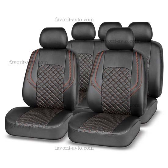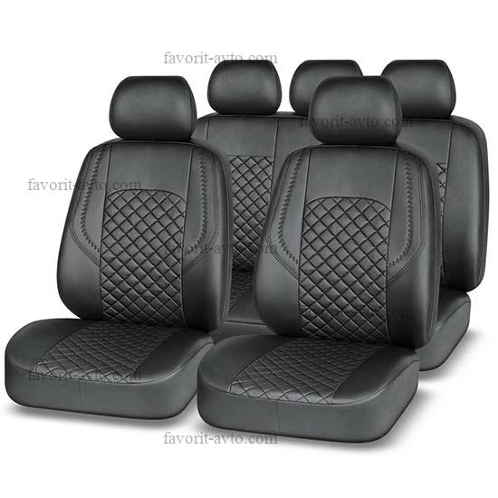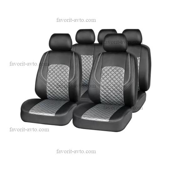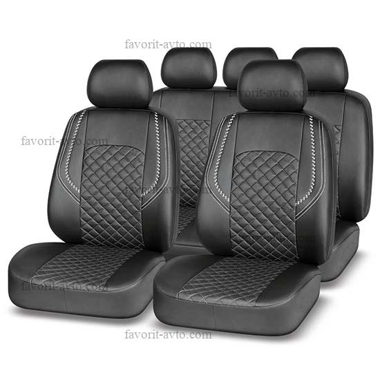 Авточехлы AUTOPREMIER GRAND, чёрный/белый, экокожа, стёганый ромб, карман, 5 мм поролон, 3 молнии, 11 предметов. 1/5, GND2010 |