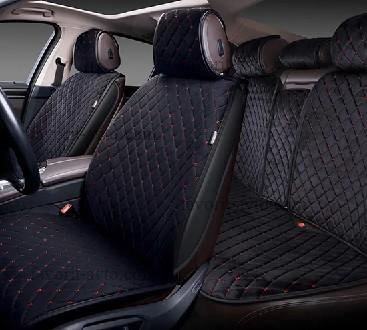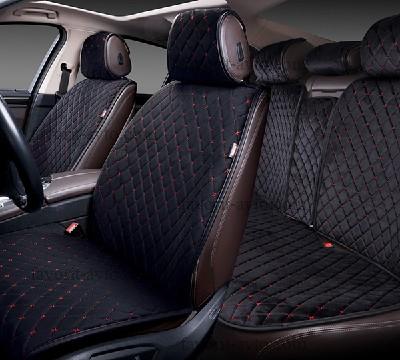 Накидка PREMIER ALCANTRA LUXE, комплект на весь салон 4 шт., /ЧЁРНЫЙ+красная нить/, стёганая алькантара, 1/3, ALL1200 |