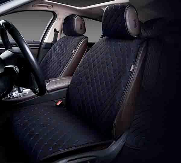 Накидка PREMIER ALCANTRA LUXE, комплект передний 2 шт., /ЧЁРНЫЙ+синя нить/, стёганая алькантара, 1/6, ALL110 |