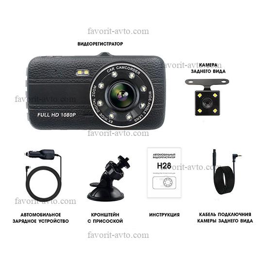 Видеорегистратор H-28, 2камеры,FHD(1080p),экран 3.9”,G-сенсор