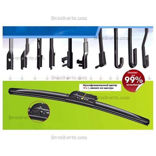 Щётка стеклоочистителя Медведь ГИБРИД, универсальное крепление (для европейских, корейских, японских ПОД ЛЕВЫЙ И ПРАВЫЙ РУЛЬ, MHW-17 (430мм.). 1/25/50 |