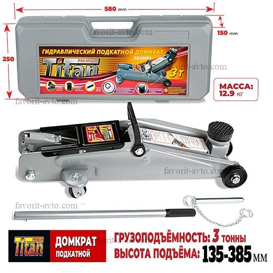 Домкрат TITAN подкатной 3 т. (135-385 мм) в чемодане, с фиксатором. ZQ35001. |