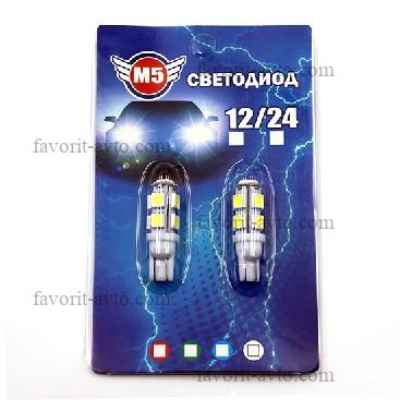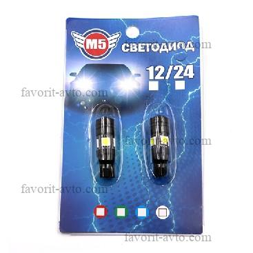 Светодиод Т10 линза +4 SMD 5050 белый (блистер, Комп.: 2шт.). 1/500 |