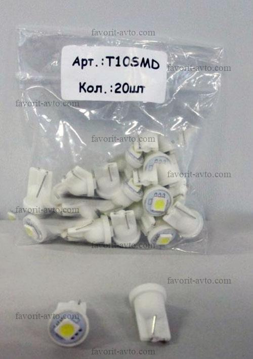 Лампа светодиодная Т10 (W2,1-9,5d) белая, 1 SMD 5050 диод, (б/цокольная) 12v. (T10 SMD). Мин. 10шт. 1/10/2500 |