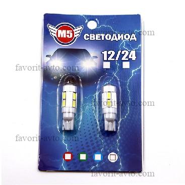 Светодиод Т10 линза+10 SMD 5730 белый (блистер, Комп.: 2шт.). 1/500 |