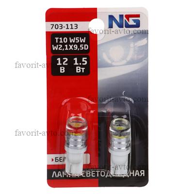 NG Лампа светодиодная T10, 1,5W (вогнутая линза),12В,белый, 2 шт., блистер |