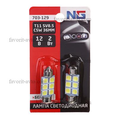 NG Лампа светодиодная T11, (6SMD-5050), 36 мм, 12В,белый, 2 шт., блистер |