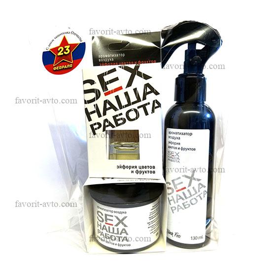 Набор подарочный ароматизаторов "SEX наша работа" - Эйфория цветов и фруктов (Банка, спрей, флакон). уп-ка прозрачный пакет. |