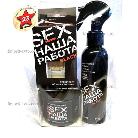 Набор подарочный ароматизаторов "SEX НАША РАБОТА BLACK"- аромат Shaik 77- cтрастные объятия востока (Банка, спрей, флакон). уп-ка прозрачный пакет. |