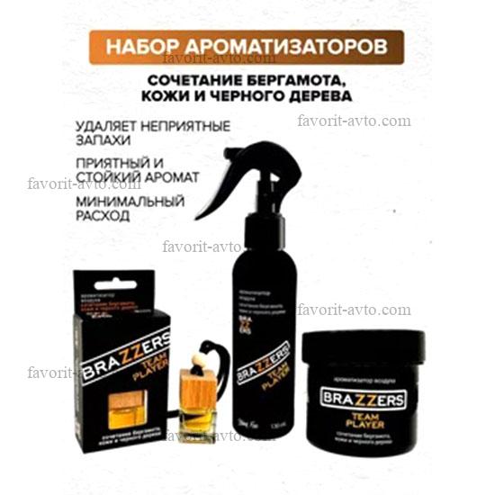 Набор подарочный ароматизаторов "BRAZZERS"- Сочетание бергамота, кожи и черного дерева (Банка, спрей, флакон). уп-ка прозрачный пакет. |