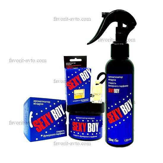 Набор подарочный ароматизаторов "SEXY BOY"- Сладость фужерного парфюма. (Банка, спрей, флакон). уп-ка прозрачный пакет. |