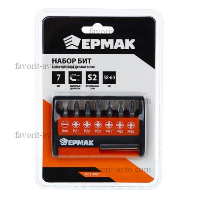ЕРМАК Биты для шуруповерта, набор 7шт.,магнитный адаптер для бит, биты 25 мм, пластиковый кейс. 1/10шт |