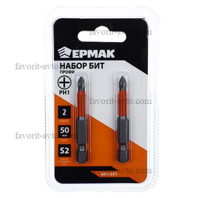 ЕРМАК Биты для шуруповерта PH1 длина 50 мм, сталь S2, 2 штуки, ПРОФИ СЕРИЯ |
