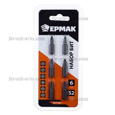 ЕРМАК Биты для шуруповерта, набор 6 предметов, блистер, длина 25 мм, в наборе PH PZ |