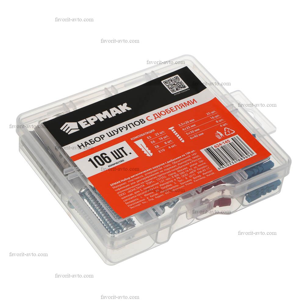 ЕРМАК Набор металлических шурупов с дюбелями на 106шт |