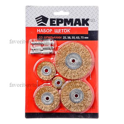 ЕРМАК Набор щеток металл со шпильками 5 пр (50,75мм -пл., 25,50,75мм- чашки). 1/10/40 |