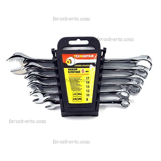 Набор ключей рожково-накидных 6 предметов, хромированные, пластик холдер: 8,10,12,13,14,17 мм. JI-010. 1/4/36 |