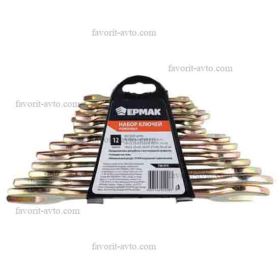 ЕРМАК набор ключей рожковых, 12 предметов пластик (желтый цинк) 8x10 - 30x32 мм. 1/16 |