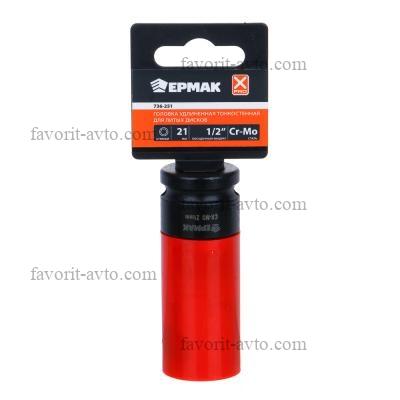 ЕРМАК X-PRO Головка удлиненная тонкостенная для литых дисков 1/2", 21мм, CR-MO |
