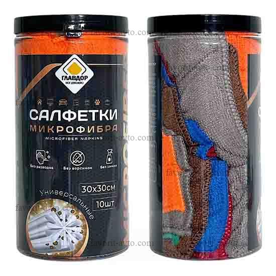 Салфетки из микрофибры "ГЛАВДОР" GL-1007, в тубе, 30х30 см (10 шт.) |