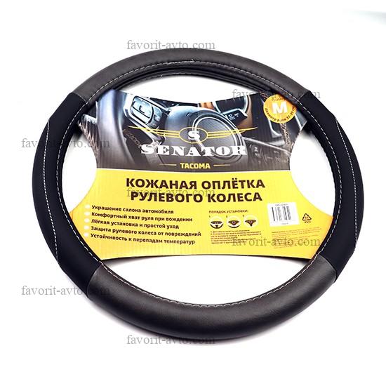 Оплетка на руль SENATOR TACOMA нат. кожа, вставки из графитовой экокожи, прострочка серая, "M" (d=38см) /СЕРЫЙ/. Арт.: OPLS2401. 1/25 |