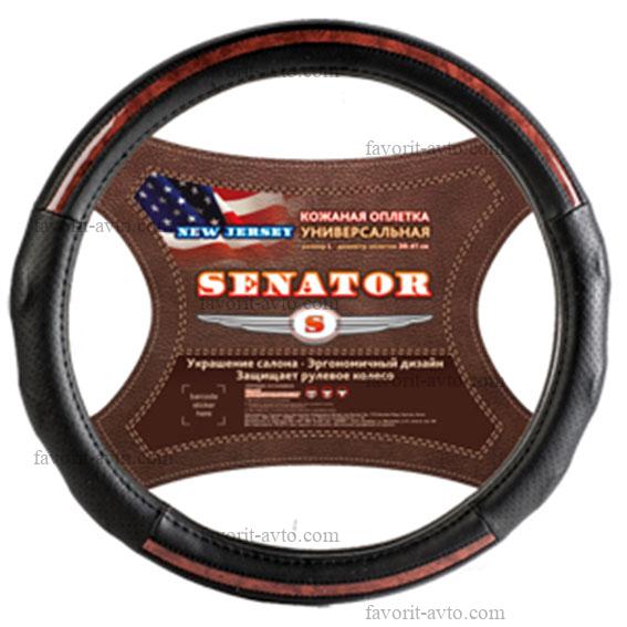 Оплетка на руль кожаная SENATOR New Jersey "M" (d=38см) /ЧЕРНЫЙ+дерево/. Арт.: OPLS1401. 1/25 |
