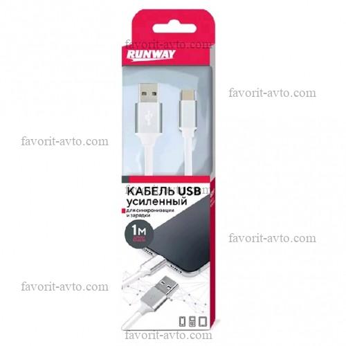 RUNWAY Кабель усиленный в нейлоновой оплетке Type C 1м белый. RR341-t |