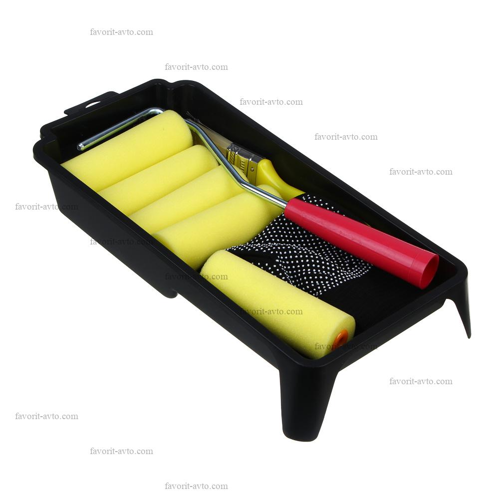 ЕРМАК Набор для малярных работ №4: валик в сборе,ролики запасные,кисть,перчатки,ванночка |
