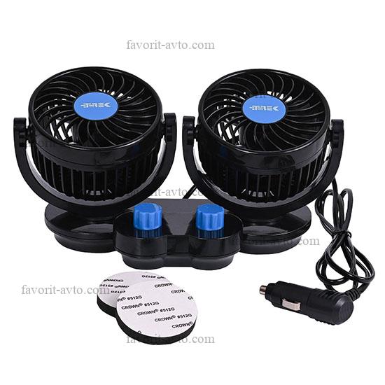 Вентилятор TREK Т-309 12V, 4,5", 7 Вт (на скотче) двойной с совмещ.регулировкой |