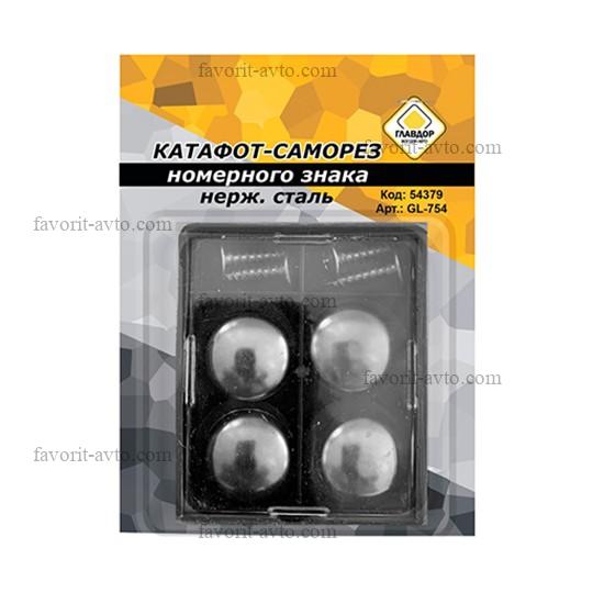Саморез-катафот номерного знака НЕРЖАВЕЙКА "ГЛАВДОР" GL-754 (4 шт.). Арт. 54379. 1/20 |
