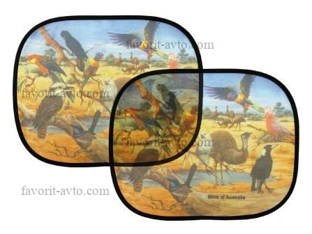 Штора солнцезащитная "Nova Bright" на присосках, для боковых стекол, с рисунком "Птицы Австралии", 44х36см. Комп. 2шт. 1/200 |