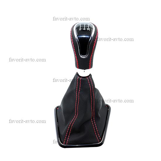 Ручка КПП с чехлом Веста натуральная кожа /ЧЁРНЫЙ с красной строчкой/ |