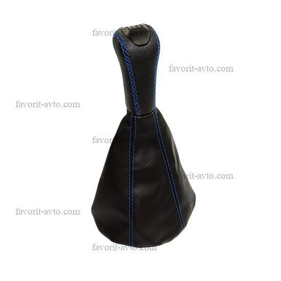 Ручка КПП с чехлом "ЛЮКС" кож-зам ВАЗ 2101-07, /ЧЁРНЫЙ+синяя нить/. "Фаворит-авто" |