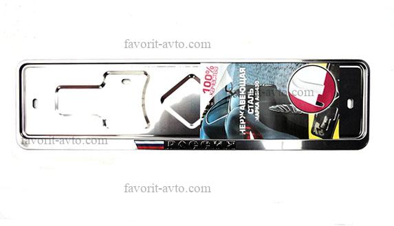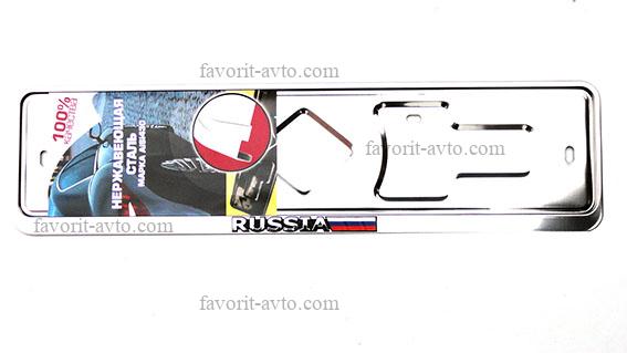 Рамка из нержавеющей полированной стали с надписью /RUSSIA рельеф+ ФЛАГ/. Пр-во Новосибирск. 1/30 |