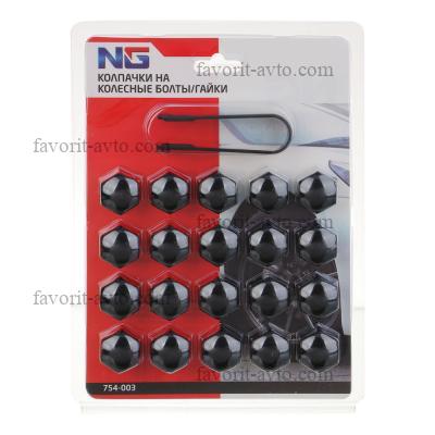 Колпачки на колесные болты/гайки 17 мм, 20 шт.+ съёмник, пластик, черный. 1/100 |