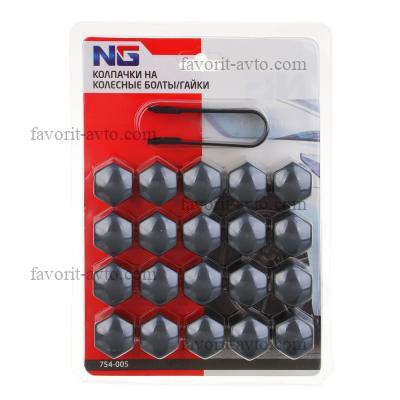 Колпачки на колесные болты/гайки 17 мм, 20 шт.+ съёмник, пластик, серый. 1/100 |