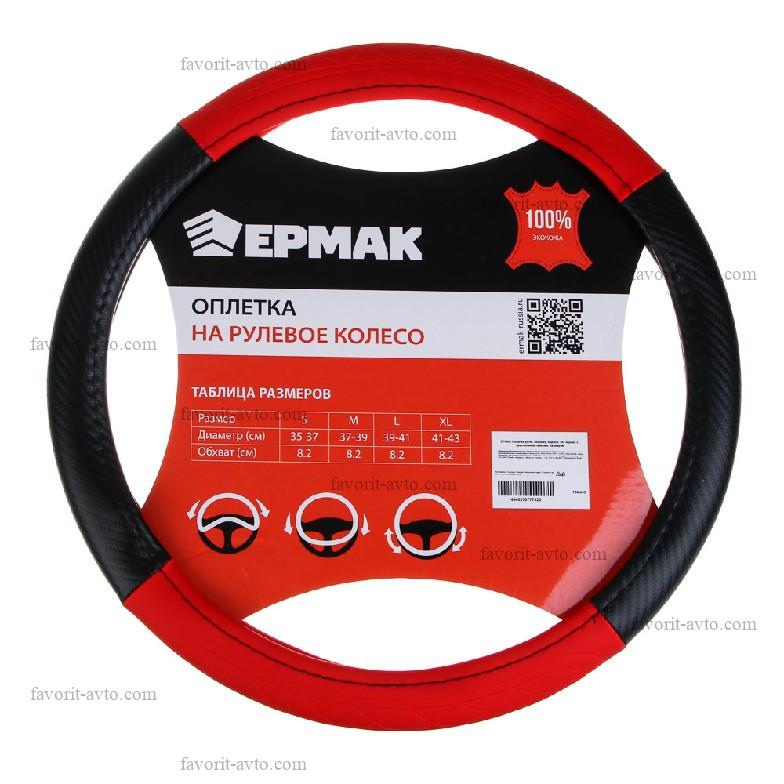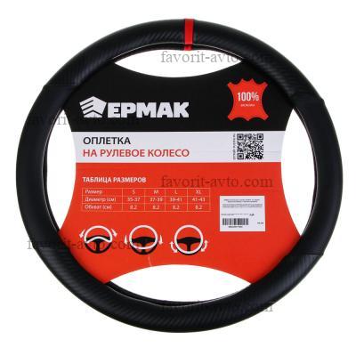 ЕРМАК Оплетка руля, экокожа, Карбон - А, черная с красными вставками, размер М. 1/25 |